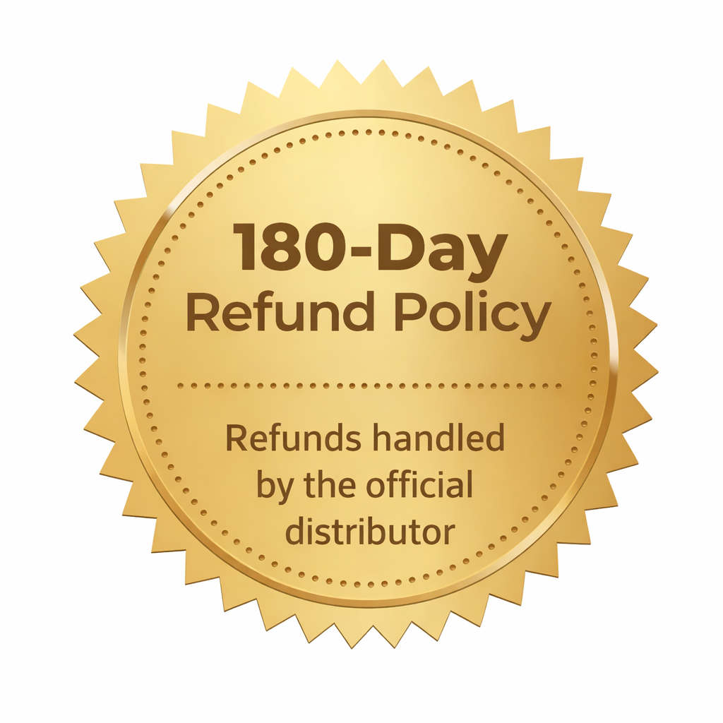 Purchases are covered by a 180-day refund policy provided by the product’s distributor.